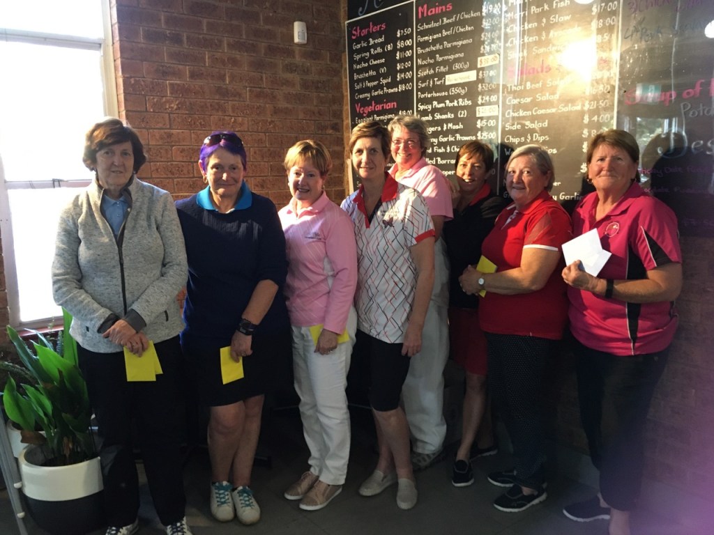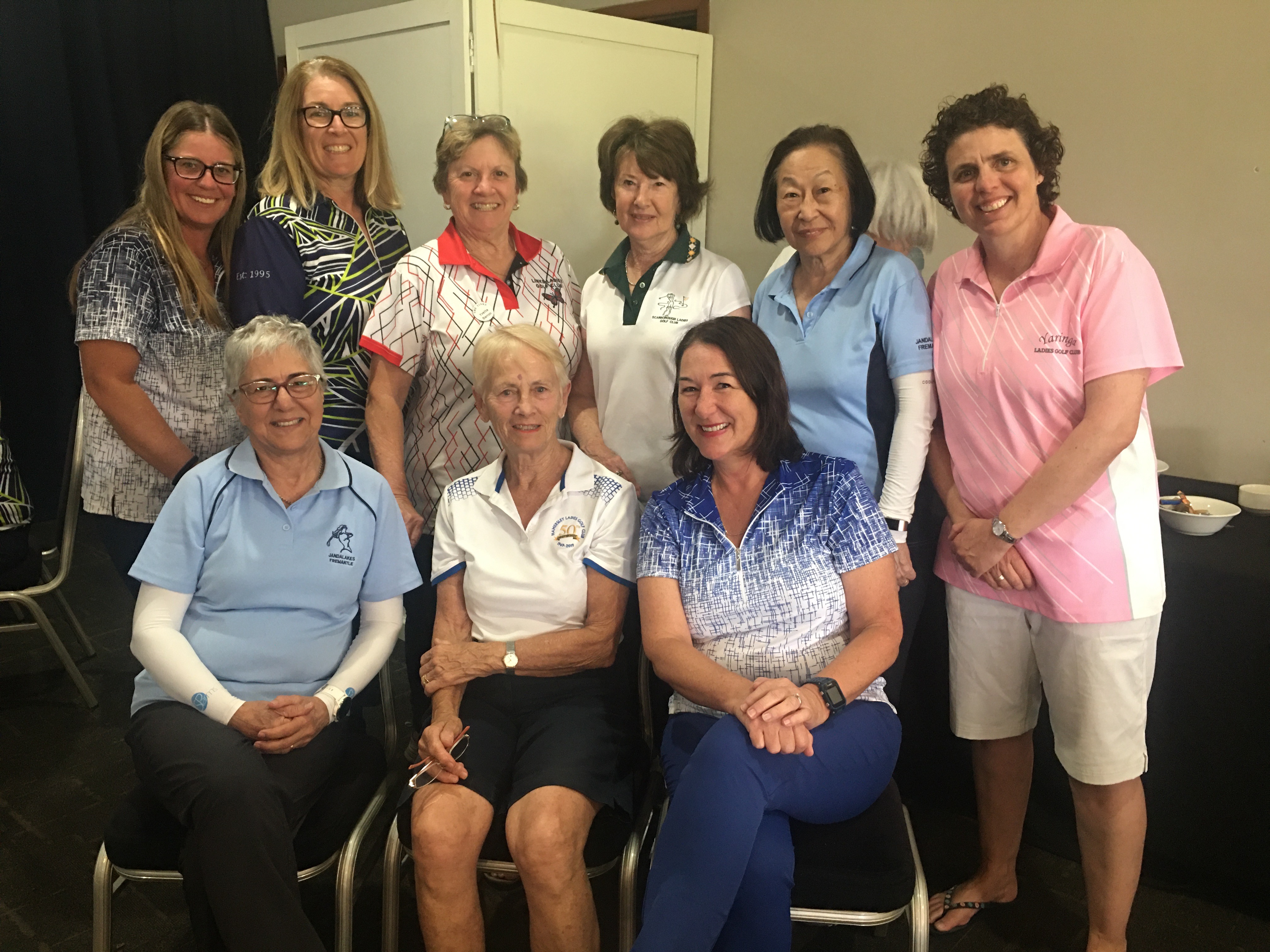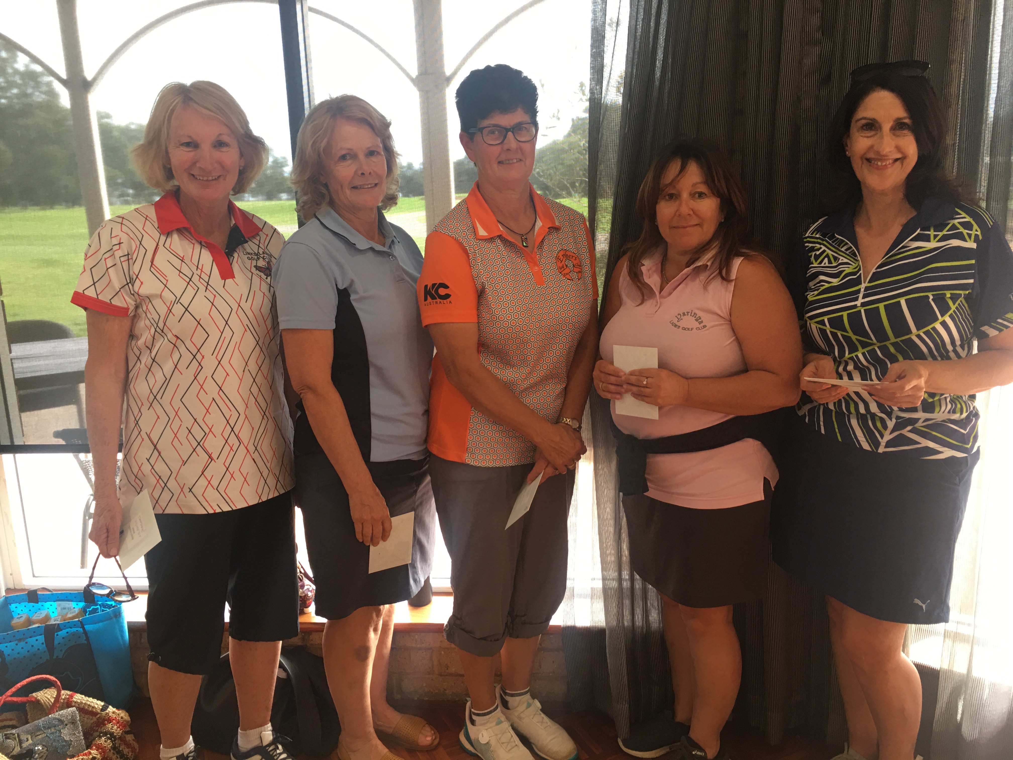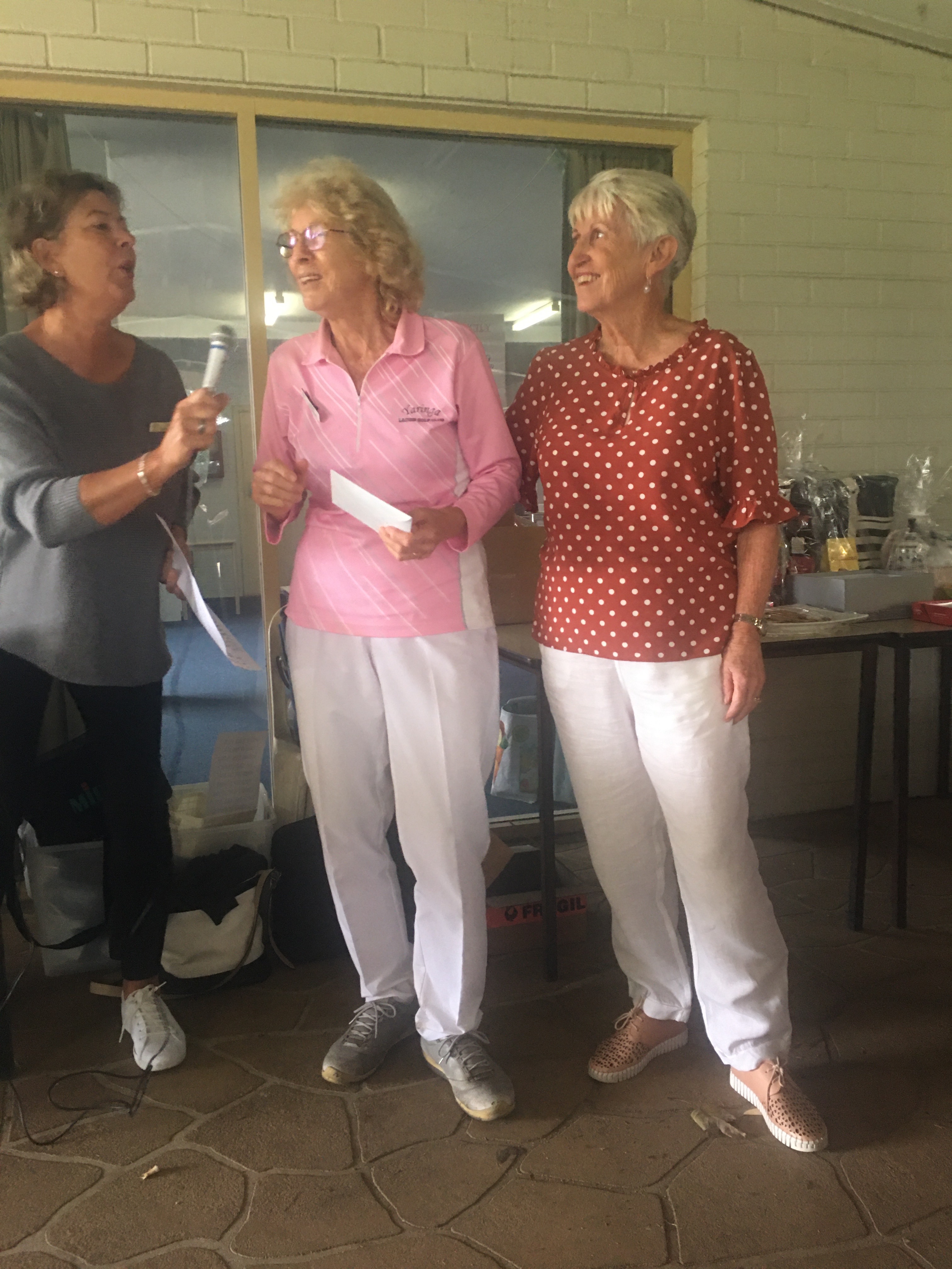 Relaxing at end of playRunner-Up Jil Wilson (28) Collier Winner Annie MacCormack (29) Marangaroo(2nd Left) Jane Noyelle (Yaringa) (Right) Carol Mill (Yaringa)Collection of Winners and Novelty Prize Winners