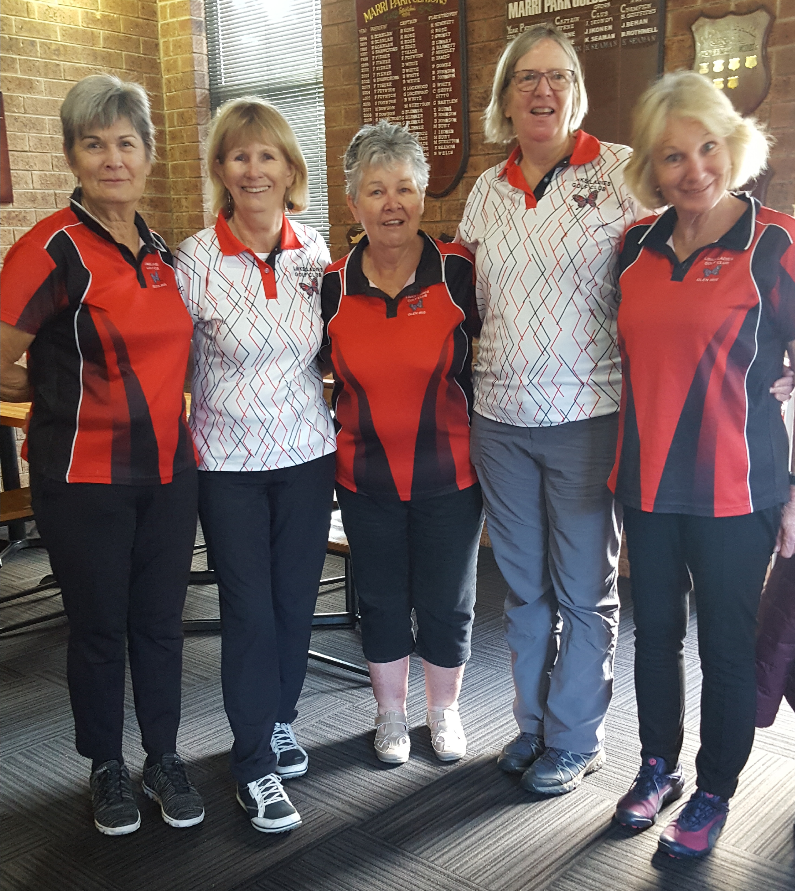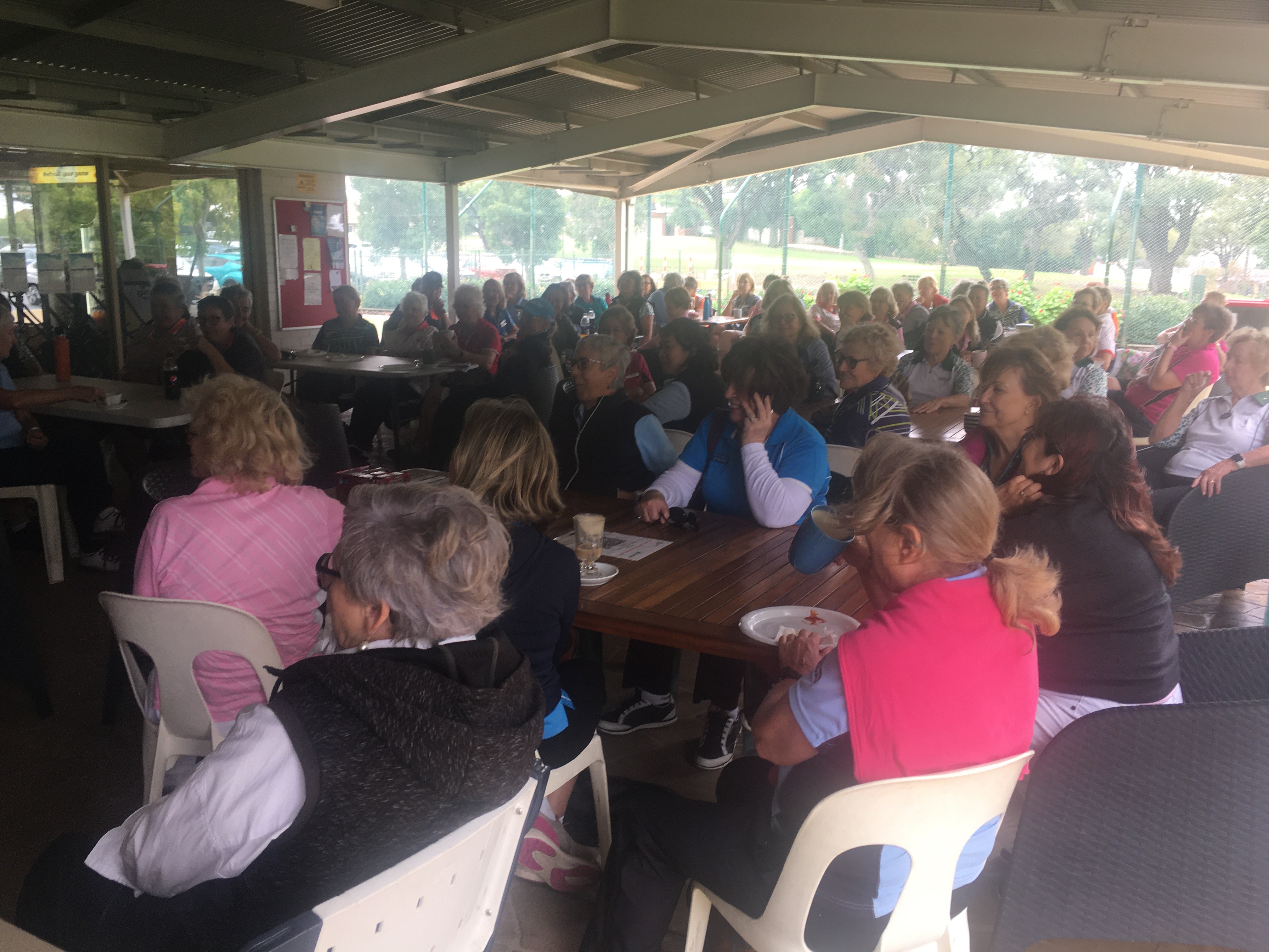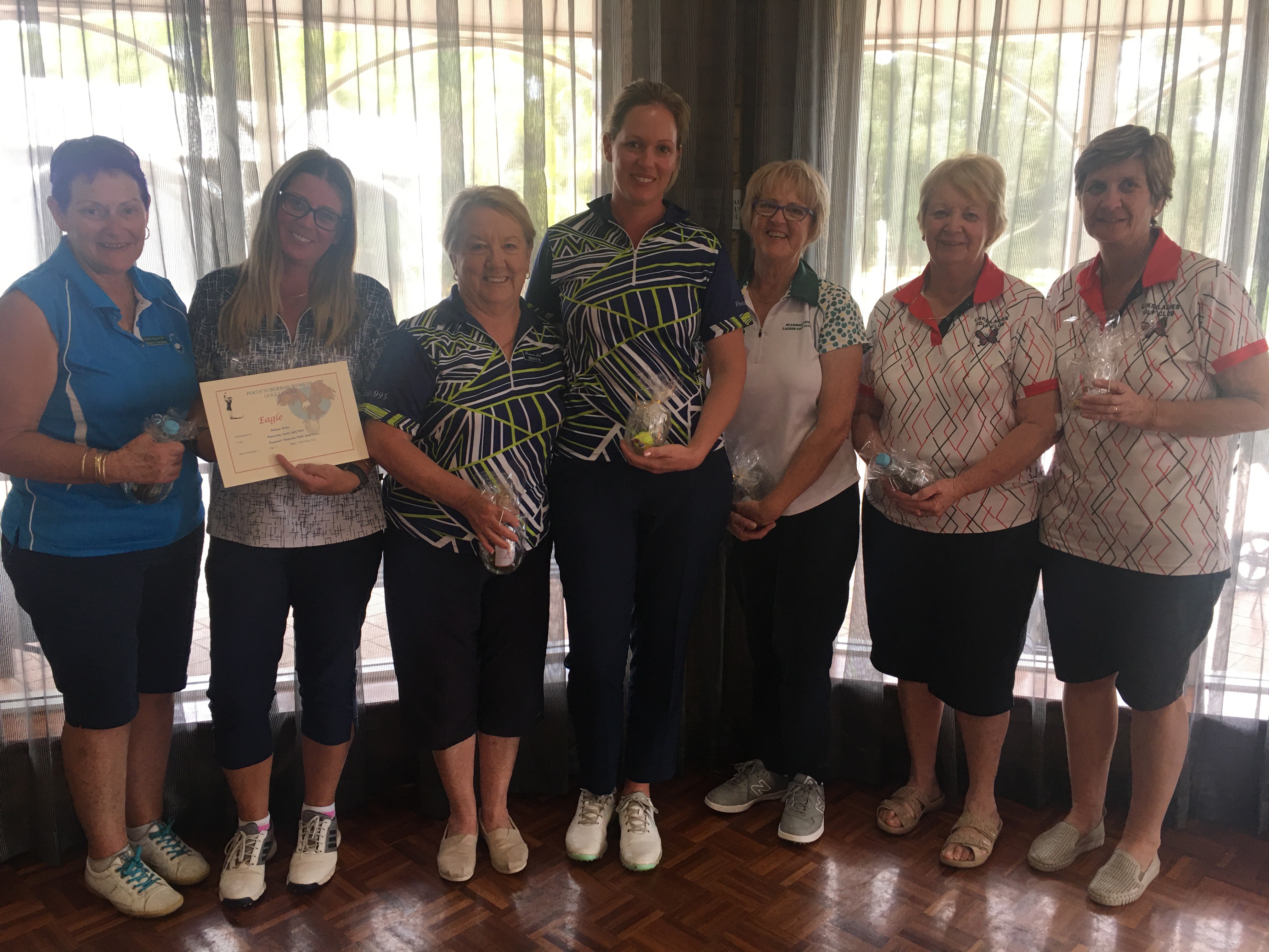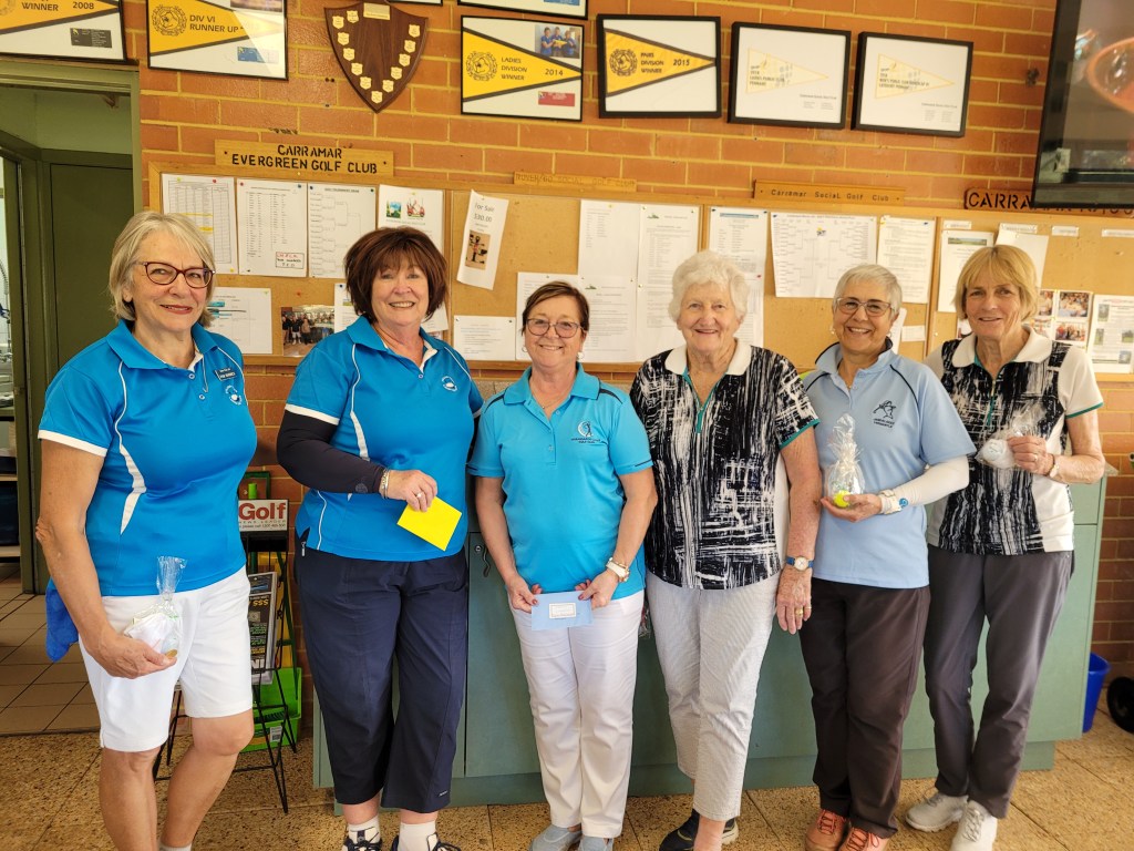 Relaxing at end of playRunner-Up Jil Wilson (28) Collier Winner Annie MacCormack (29) Marangaroo(2nd Left) Jane Noyelle (Yaringa) (Right) Carol Mill (Yaringa)Collection of Winners and Novelty Prize Winners