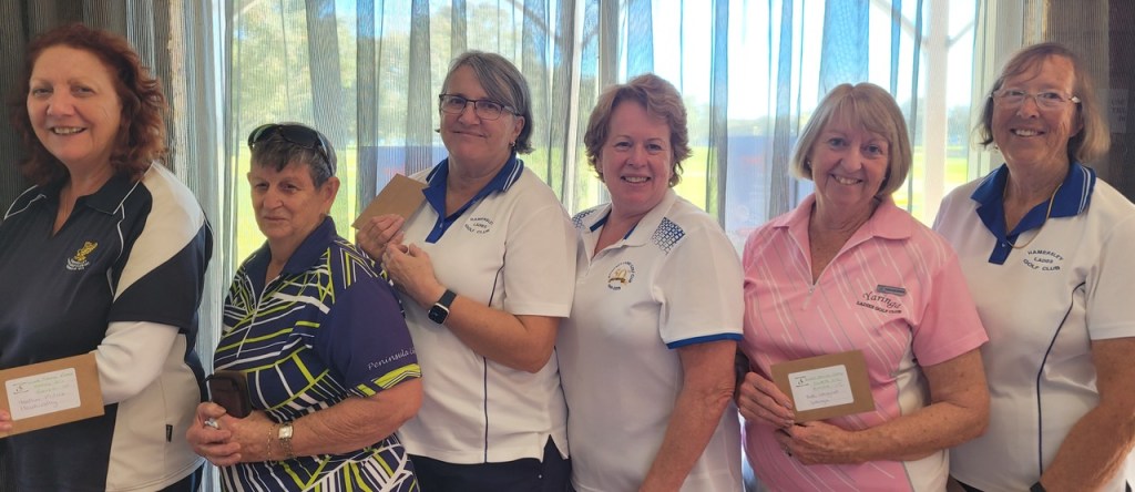 Lynley Hunter (86) (Yaringa); Winner Nett Open – June Meredith (64) (Yaringa); Iem Perrie Winner Gross Open (88) (Coastals); Absent: R/Up of Nett Open – Ingrid Jordan (67) (High Wycombe)